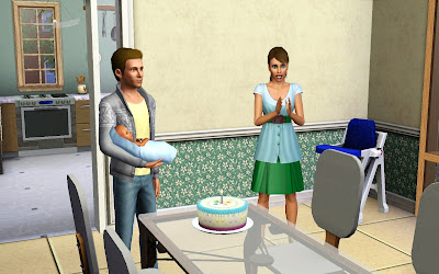 Oh, wow, so many things to comment on! :) Okay, love the innoculation thing but if someone pulled a flute like that out to give me an immunization I'd scream bloody murder! lol That's a big sucker! Yeah, Sims forming a line...not too likely--ha! I was a little worried when Addy offered to lie next time and then said the old "don't tell your dad" thing which just makes Brian the "bad guy". But it's realistic; lots of moms do that, I've known a couple. Poor Logan. One or two infractions and the cops come to get him :) Of course, that's probably a good thing, he can be "scared straight". Loved Carla sticking out her tongue! And DAvid's BD--what a CUTIE. Then I had to laugh; he's sitting there thinking, "Oh, great, it's my birthday and I'm stuck here on the floor while you all eat my cake". But his mother remedied that when she smooshed up some cake for him later. Good visual image :D